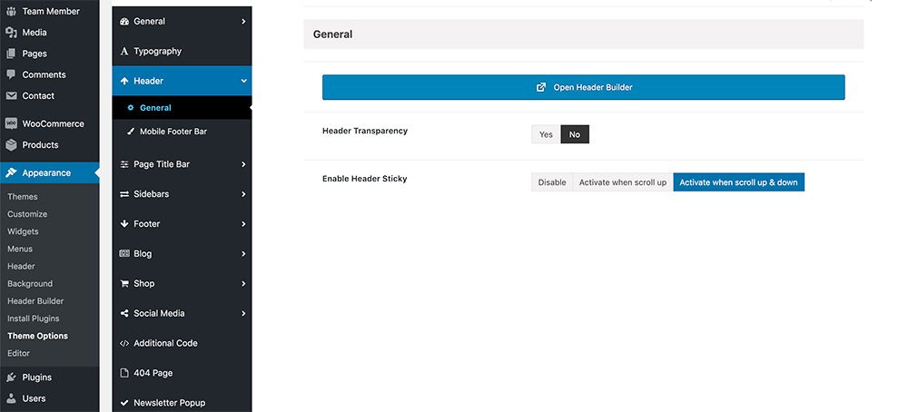 In this section you can control global header settings of your site