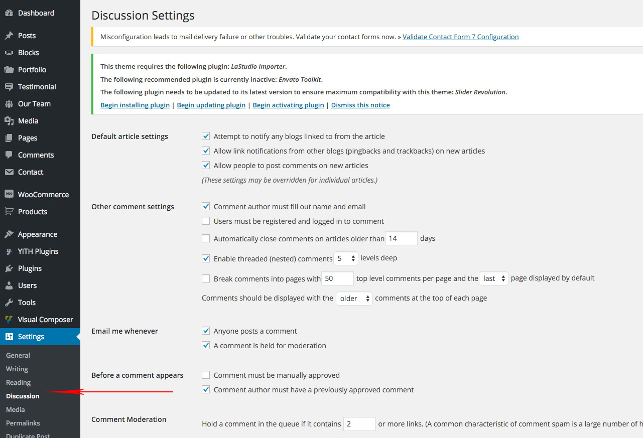 Step 4 – You can set Discussion settings in Settings > Discussion