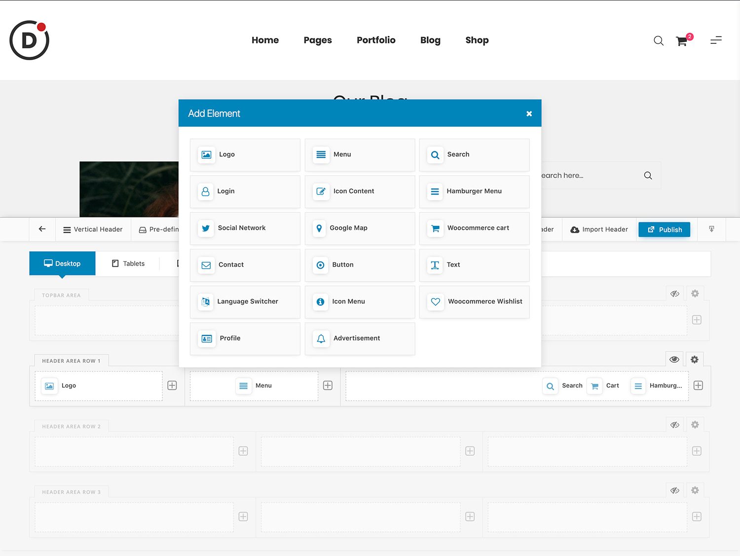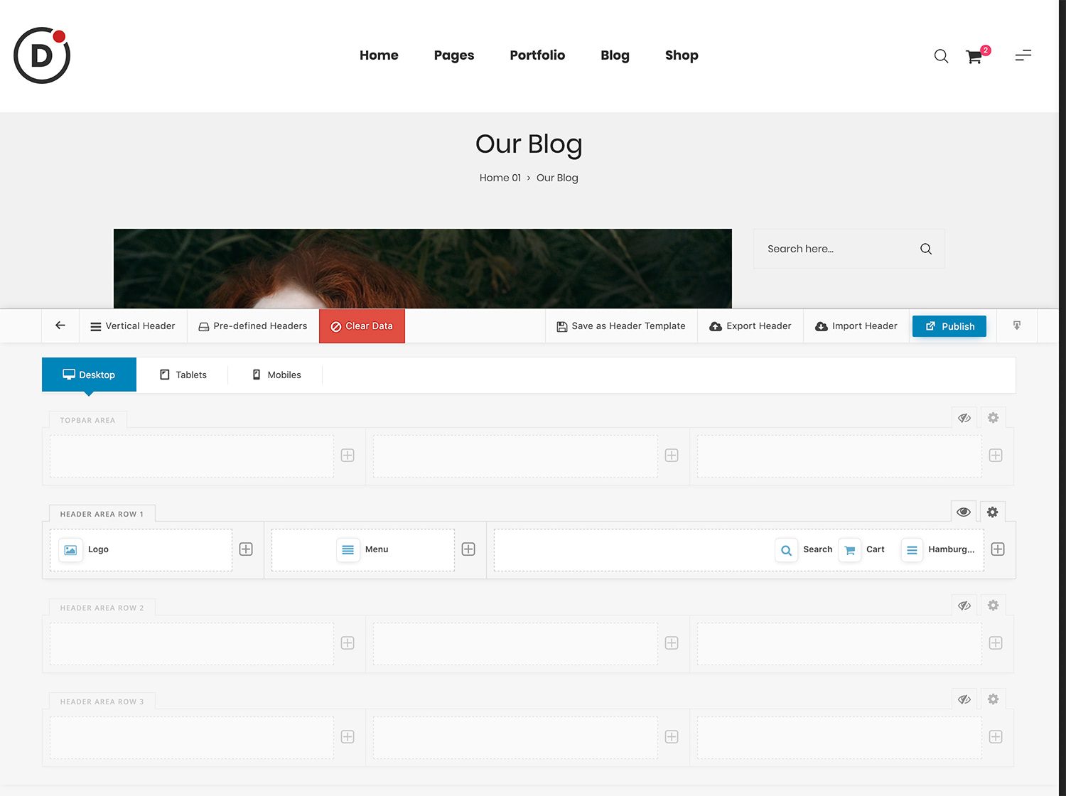 Header Builder is a drag-and-drop editor to help you build and customize your own headers.