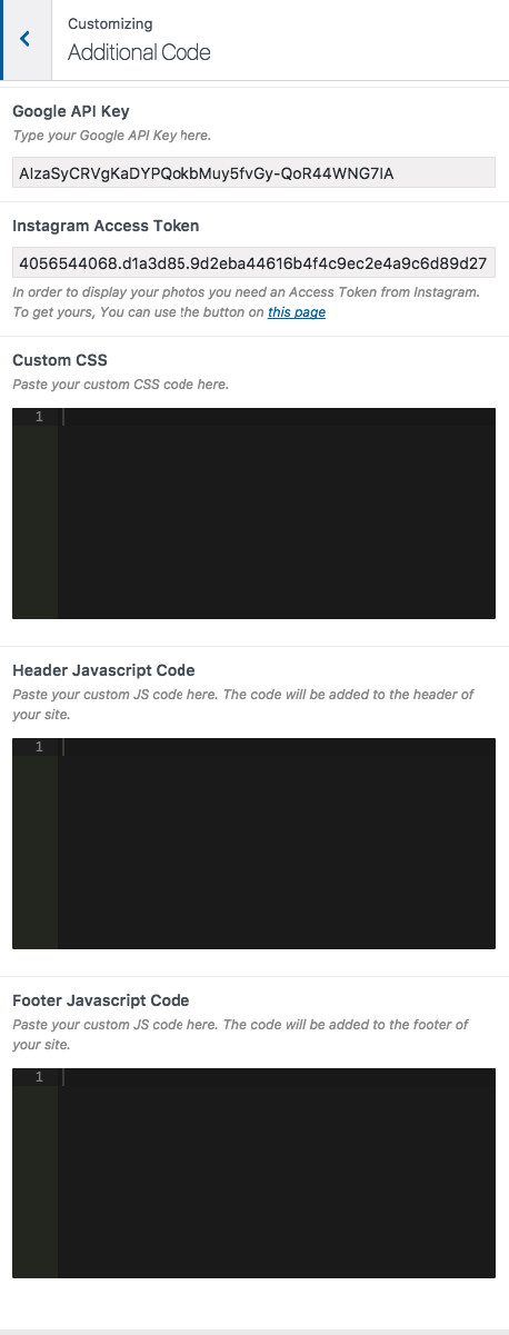 | Custom Javascript | Add some Javascript to your theme by adding it to this text-area. Please do not include any style tags. |