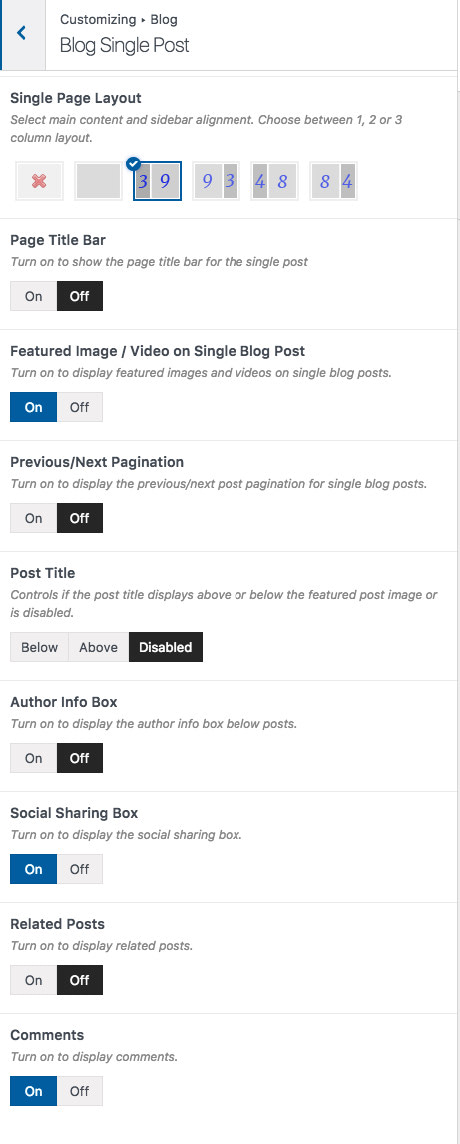 | Custom Page Layout | Select main content and sidebar alignment. Choose between 1, 2 or 3 column layout. |